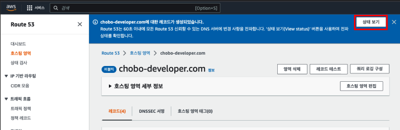 - AWS Route53 에 접속