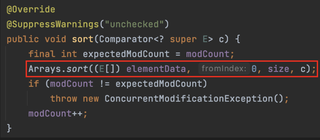 이전에 사용하던 Collections.sort 메소드 내부에서 List.sort 메소드를 호출하기 때문에
