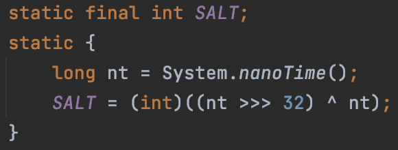 코드를 확인해보면 ImmutalbeCollections 클래스 안에는 SALT 값이 있습니다.