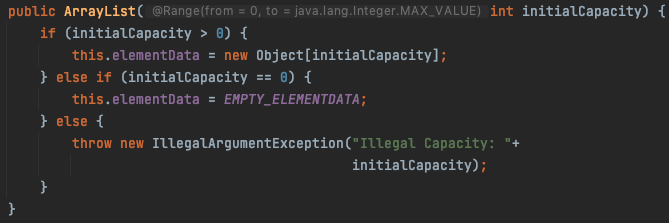 - 만일 0 을 전달한다면 EMPTY_ELEMENTDATA 라는 값으로 초기화됩니다.