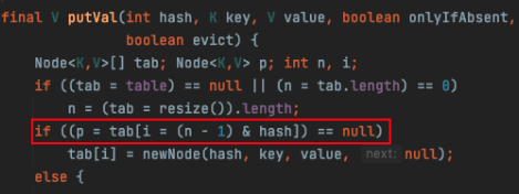 putVal 메소드의 표시된 부분에서 & 연산을 통해 index 값을 구합니다.
